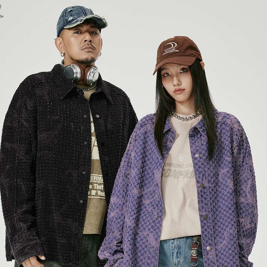 ゆったりとしたサイズ感と前開きボタンで着脱しやすく、様々なボトムスと相性抜群。