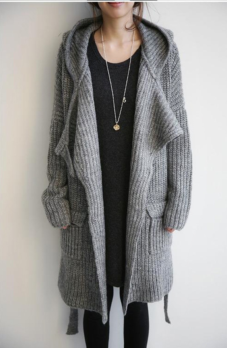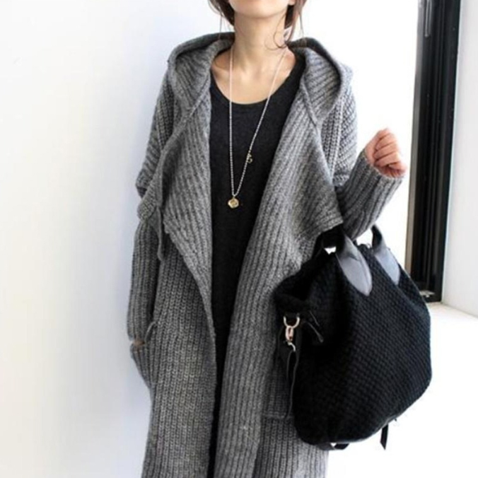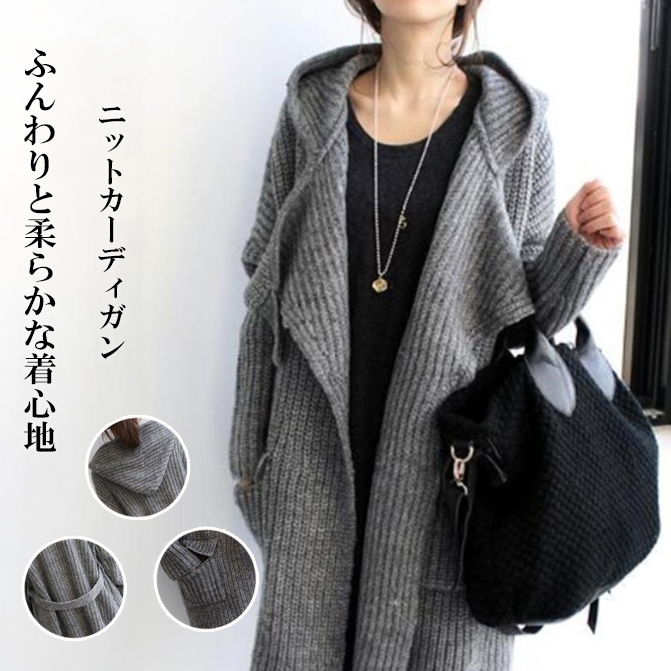 ふんわりと柔らかな着心地が魅力のニットカーディガン。 大きめサイズでゆったりとした着用感が楽しめます。 フード付きロング丈で体型カバー効果も抜群。 秋冬の重ね着にも最適な一枚です。