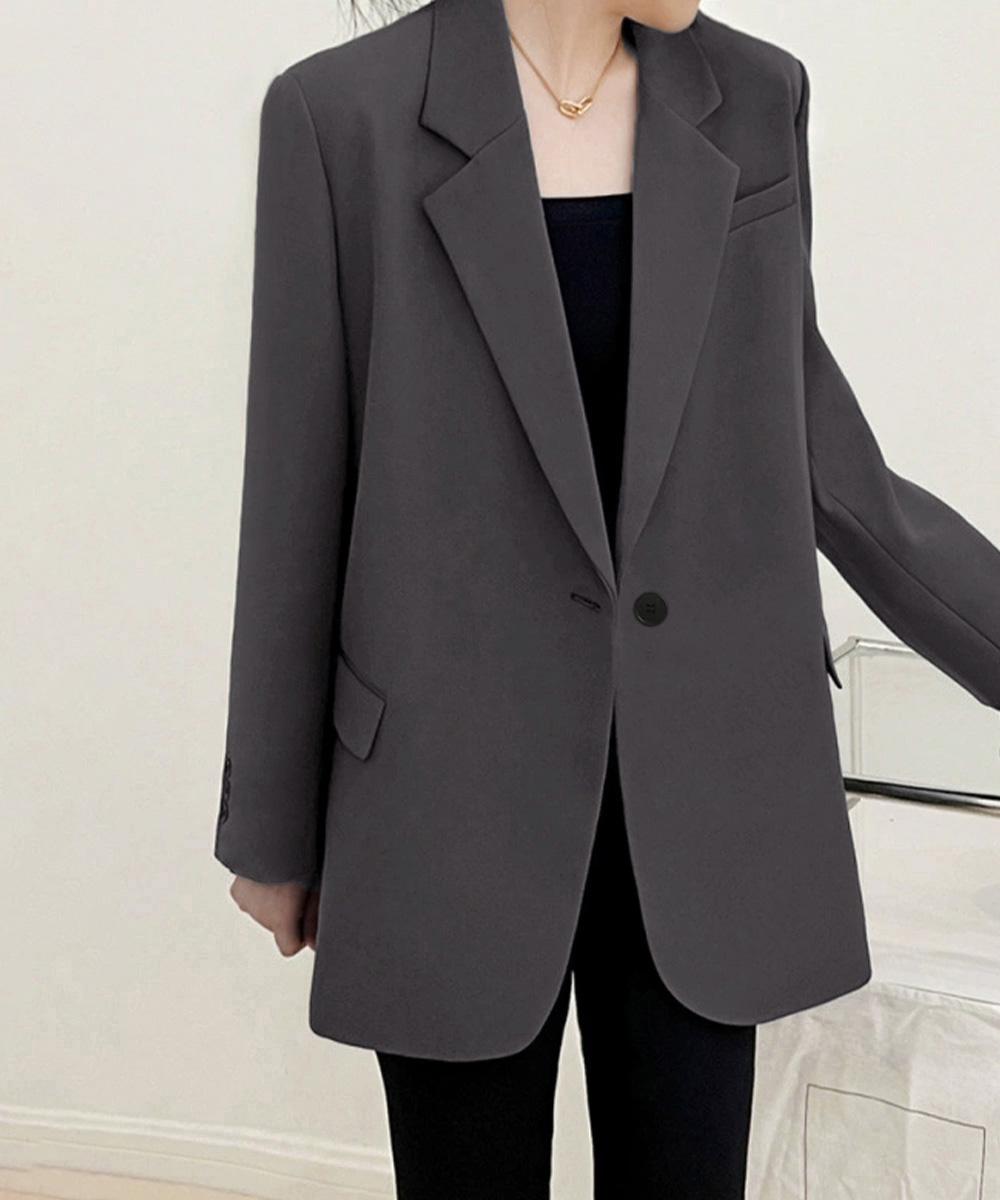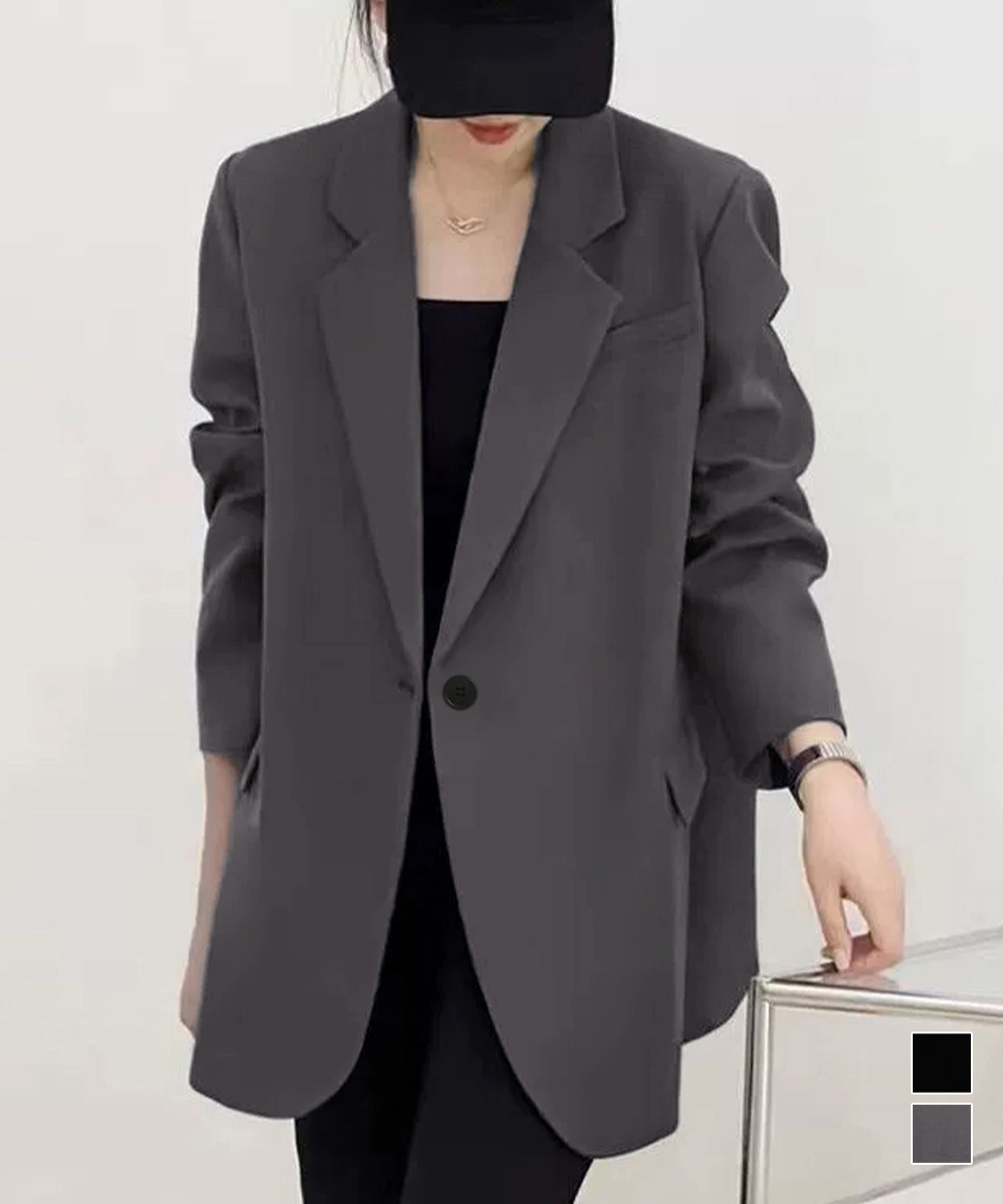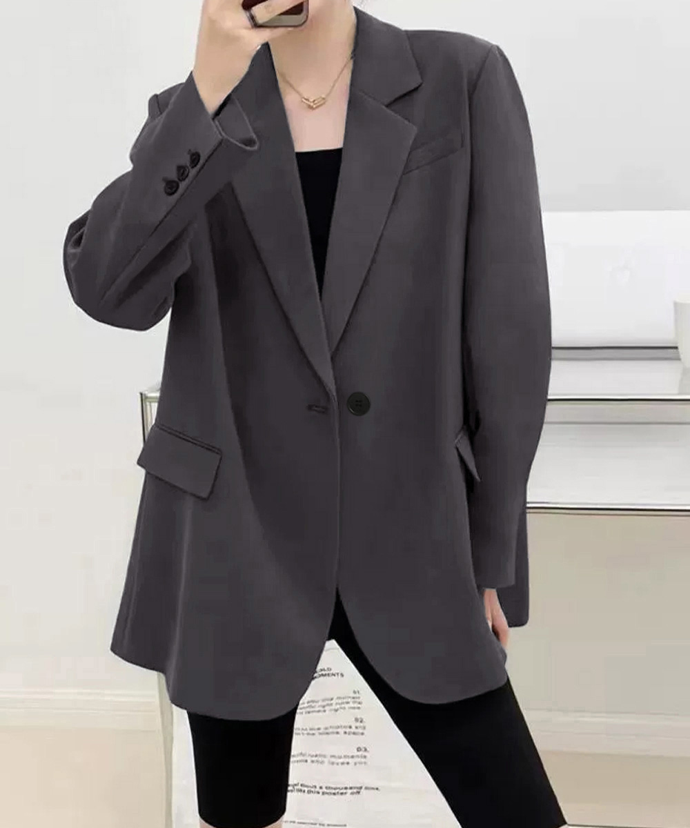 大きめサイズで体型カバーに優れた韓国風テーラードジャケット。
