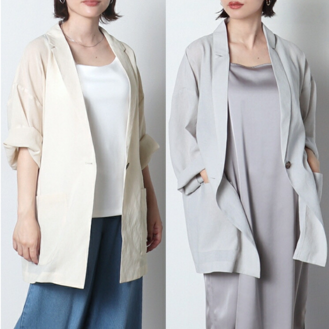 薄手の素材で季節の変わり目にも活躍する羽織りジャケット。