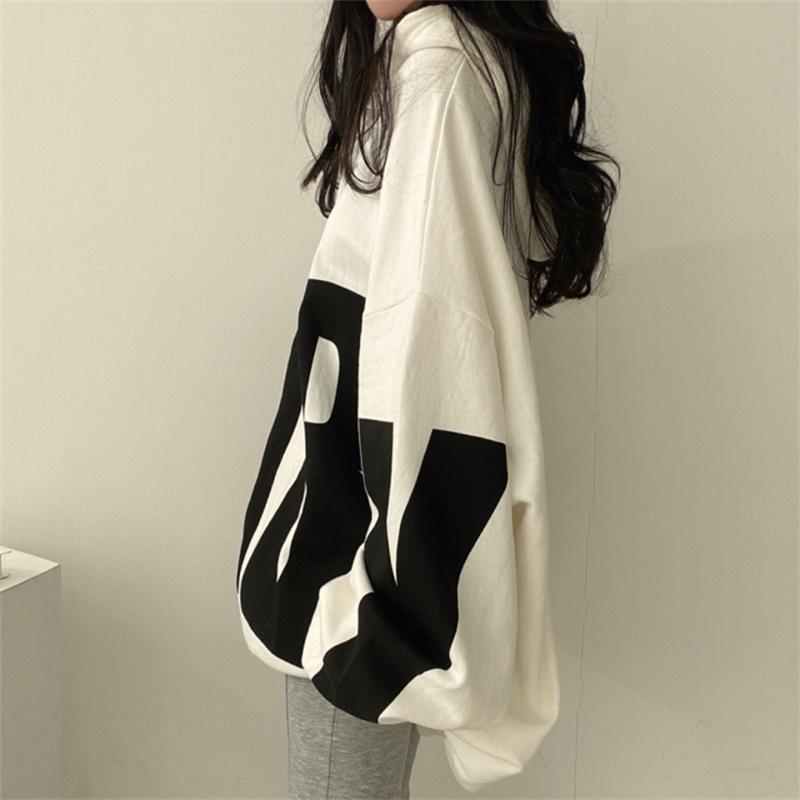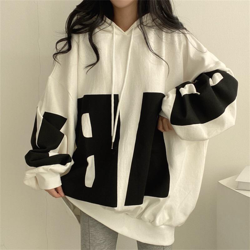白と黒のコントラストが印象的なフード付きデザイン。