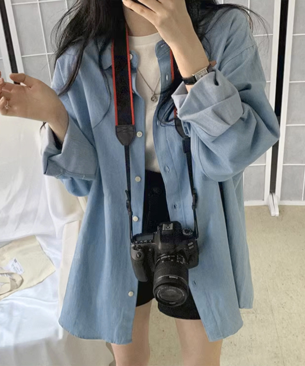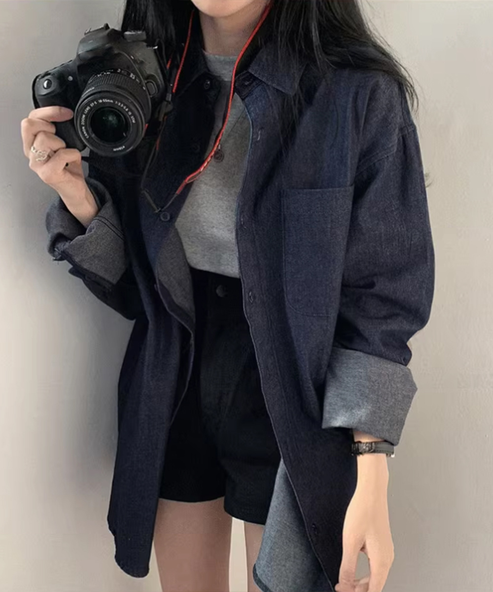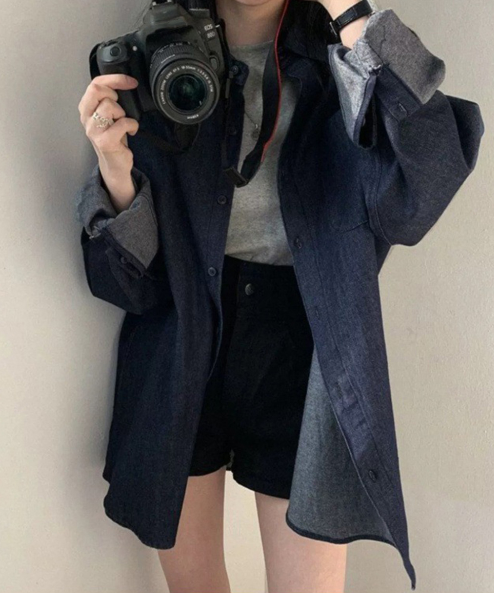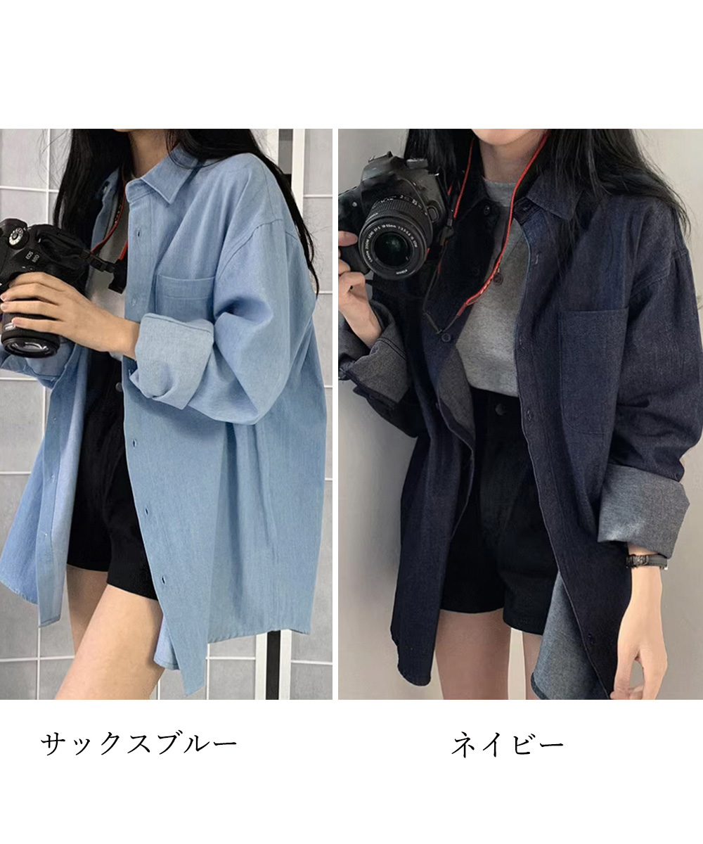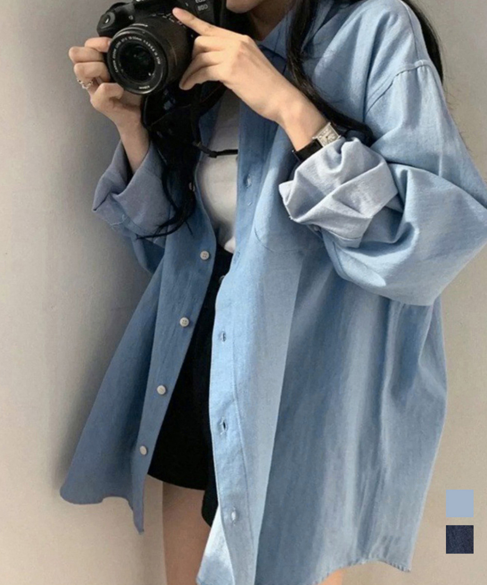 大きめサイズでゆったりとしたシルエットが魅力のデニムシャツ。